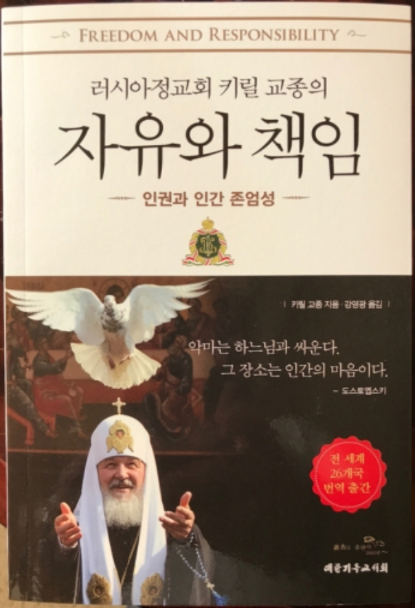 莫斯科及全俄罗斯宗主教基里尔的著作名为《自由与责任:寻求和谐》,已经被翻译成了26种语言,包括中文和日语。韩语版的翻译工作是由俄罗斯东正教域外教会韩国传教团的帕威尔·姜大司祭所筹备。