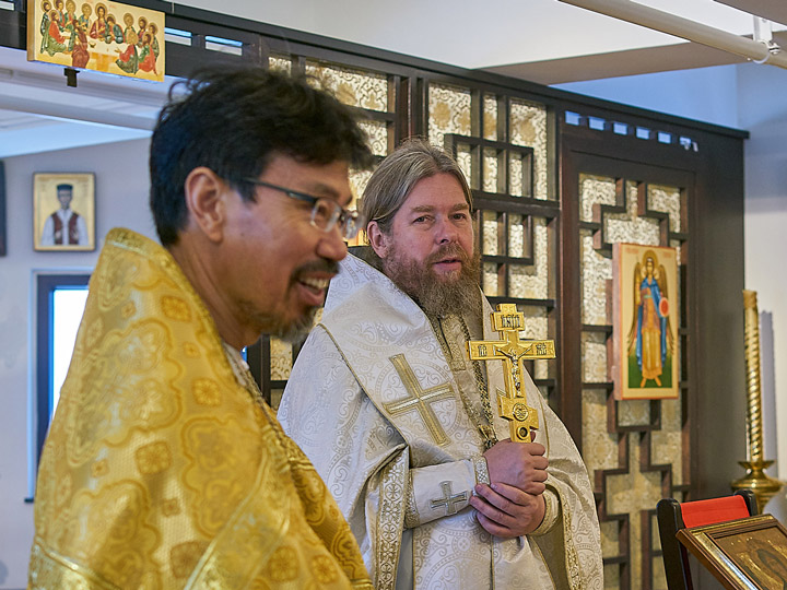普斯科夫和博尔霍夫斯基府主教吉洪,在至圣宗主教基里尔的祝福下,于7月1日在香港圣使徒彼得与保罗堂区主持了圣体血礼仪。吉洪座下受到了香港堂区的俄罗斯与中国的神职人员与信众们的欢迎。