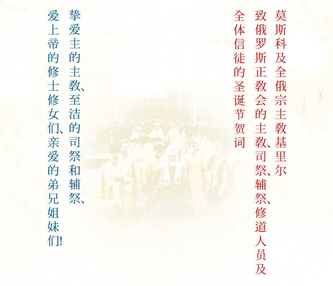 “上帝受享光荣于高天,主爱的人在世享平安!”——我们一次一次地与天使之音共鸣。在救世主诞生之中显示的上帝之爱,给人们带来了真理的世界。生活的混乱、社会的动荡、政治的败坏甚至战争的冲突都不能动摇这个世界,因为在这个世界中灵性的力量以基督生活在其中,祂可摧毁任何地上的不幸和苦难(圣伊格纳季《修道的经验》)。