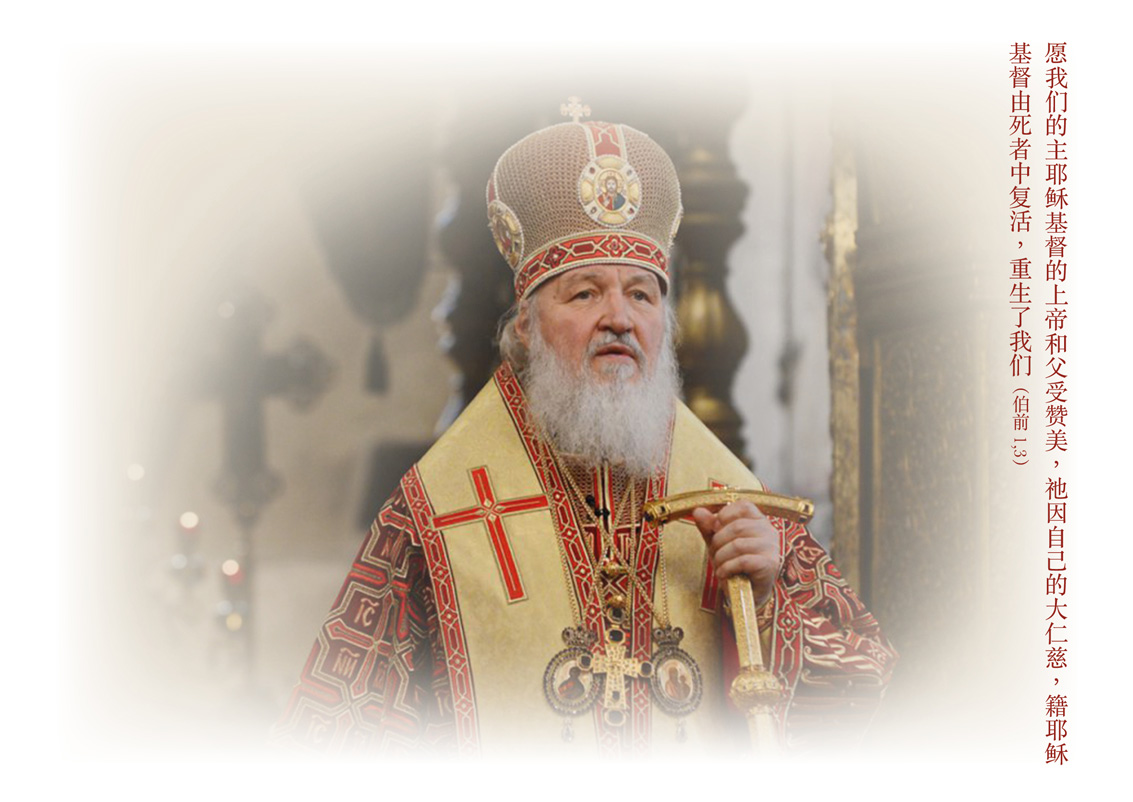 亲自的兄弟姐妹们!想再次再次全心全意祝贺你们节日中之首节,节庆中的首庆——救世主复活节快乐(复活节圣颂典)。就像圣使徒若望教导我们的:我们应当彼此相爱,因为爱是出于天主,祂爱了我们并派遣了自己的儿子为我们做赎罪祭。既然天主这样爱了我们,我们应当彼此相爱(若一 4,7-11)。让这些惊人的话语永远成为我们生活道路上的指南,使我们在从善和服务于远近人们的时候充满激励。阿门!