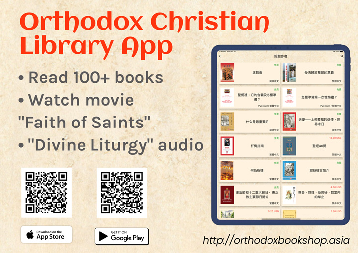 新流动应用程式「Orthodox Bookshop」宣告面世。此程式包括超过100部关于基督正教的中文书籍(简体中文及正体中文),大部份书籍为免费。