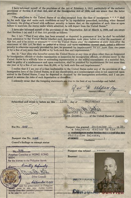 迪米特里神父前往菲律宾的签证
