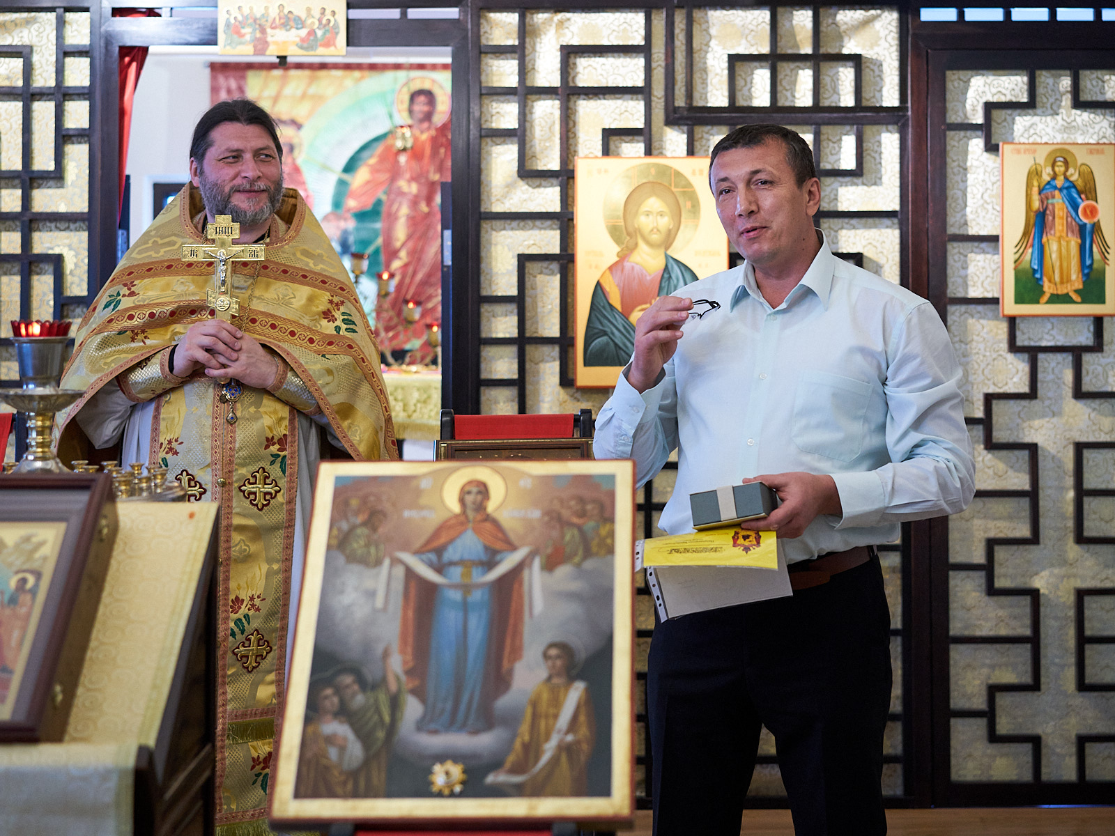 В этот раз молебен был отмечен о особенным событием: для молитвенного поклонения в храм была принесена икона Покрова Божией Матери, получившая неофициальное название "Кругосветная". Побывавшая в России, на Кипре, в Святой Земле, Австралии и США, по благословению митрополита Нью-Йоркского и Восточноамериканского Илариона при содействии Фонда "Под Покровом Божией Матери", эта икона в православных приходах по всему миру поставляется для поклонения и сугубой молитвы о покрове Божией Матери над чадами Русской Православной Церкви.