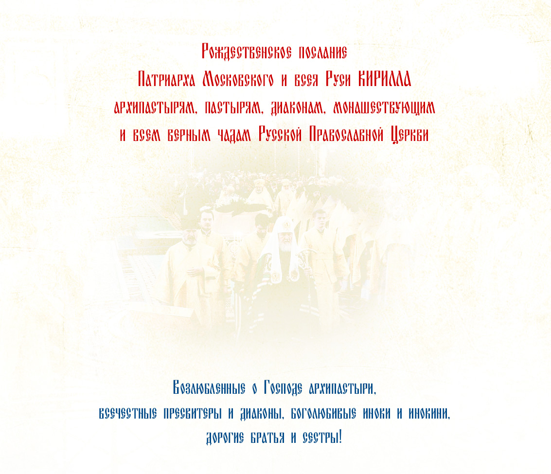 Господь да вдохновляет всех нас на многотрудном пути христианской жизни, дабы и впредь укреплялась в нас вера, не иссякала надежда и возрастала любовь; дабы, входя в торжество светлого рождественского праздника, мы неуклонно возвещали миру велию благочестия тайну (1 Тим. 3, 16), несли людям утешение и благословенный мир Христов. Аминь.
